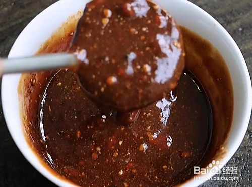 准备一个干净的碗,加入各种调味料,用勺子搅拌均匀备用。