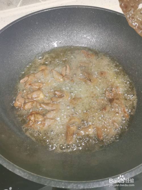 油温完全热以后,鸡心下锅炸,注意防止溅油