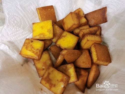 锅内热油,先把玉米饼过油炸一下,捞出后,复炸第二次,这样比较香,边很脆