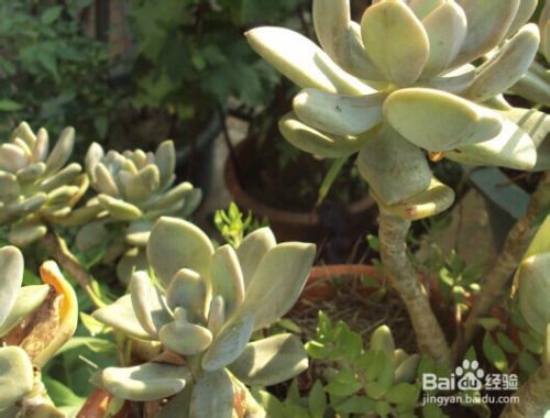 放在阳台或者露台的时候,也需要注意一点,不要放在一些长的比较高大的植物下面,因为会被其他的植物挡住的阳光,或者导致不能通风透气,这样它的颜色也不容易改变,而会长的比较嫩绿或者徒长的样子。前面这个就是被大花盆挡住阳光的植物。