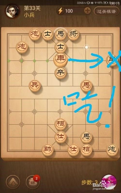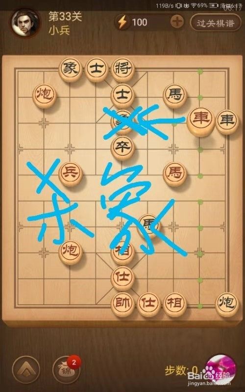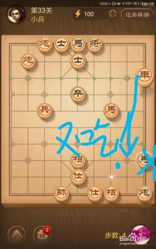 打开天天象棋,点击“象棋”,然后点击”闯关“,选择第33关,棋局如下图所示。