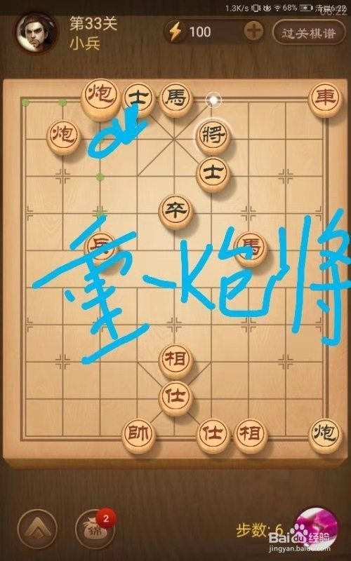 第七步,上炮形成双重炮将军,闯关成功,如图。