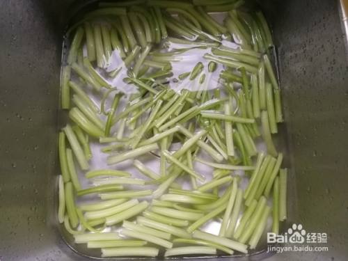 西芹撕去外表皮一层比较老的丝,留嫩的部分,掰成合适的段。