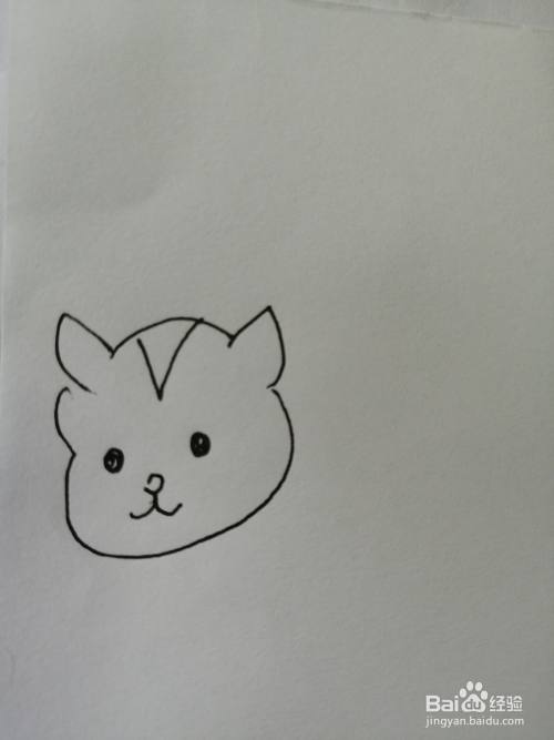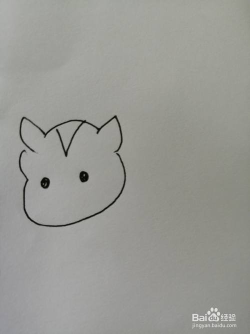 第四步,接着在可爱的眼睛下面画出小鼻子和嘴巴。