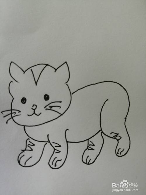 第七步,接着我们把可爱的小猫的四条腿画出来,注意腿部细节的画法。