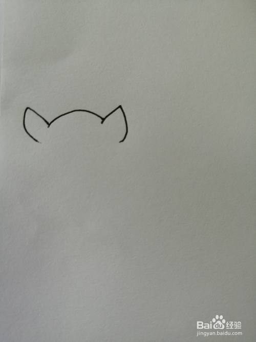 第一步,我们先把可爱的小猫的两只可爱的小耳朵画出来。