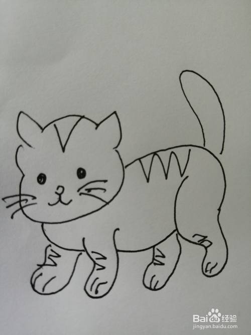 第八步,最后把可爱的小猫的小尾巴画出来。简笔画可爱的小猫就画好了。
