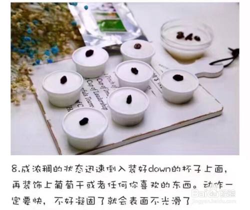 成浓稠状之后迅速倒入down的杯子中,上面放上宝宝喜欢的食物