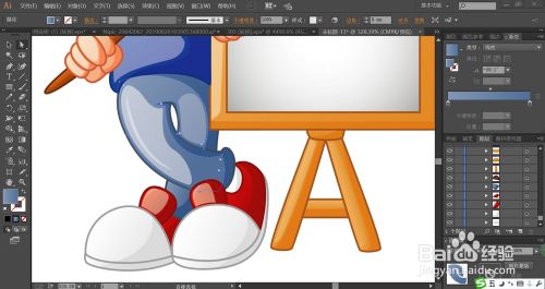 最后,我们画出小朋友的鞋子,分别用红色的渐变填充主体,再用灰白色的渐变填充鞋子前方的高光区域,完成小画家形象设计。