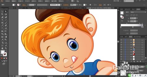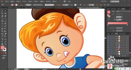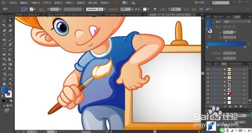 小朋友的上衣用蓝色的渐变填充,高光部位用滤色模式的蓝色渐变填充,透明度为45%左右。