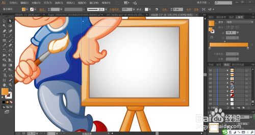 接着,我们用灰白色的渐变与橙黄色的渐变搭配填充画架,画架的高光区域在左下方位置。