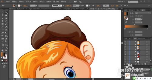 用深棕色的渐变填充帽子,再用正片叠底的渐变色填充帽子上面的高光区域,透明度为30%左右。