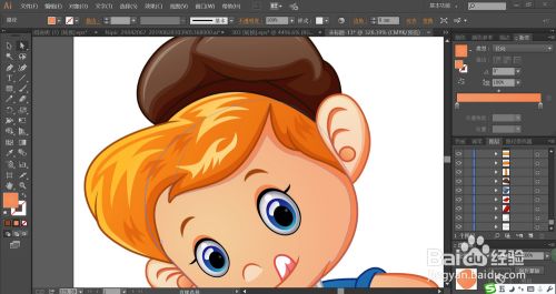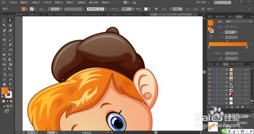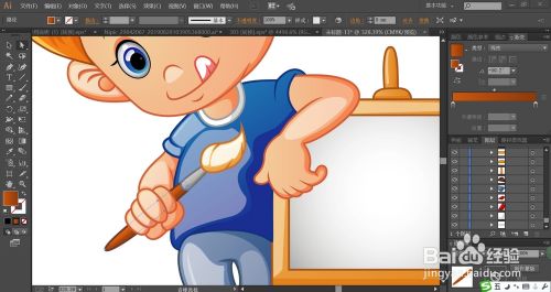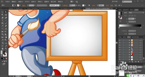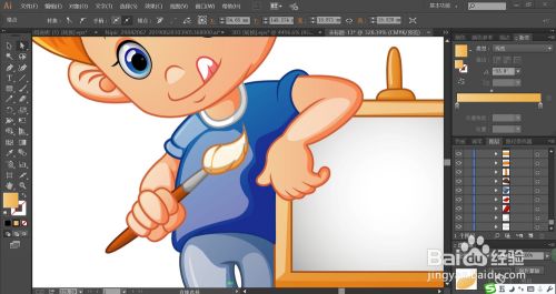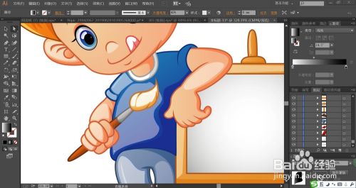 小朋友手里的画笔用橙黄色的渐变填充毛刷,用褐色的渐变填充画笔杆,手臂用粉色的渐变填充,给画笔与手臂都做出高光效果,方法与之前一样。