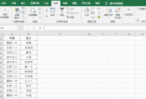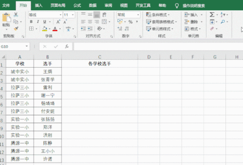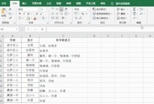 再筛选出为1的单元格内容,在C列里即为各学校中的所有选手汇总。