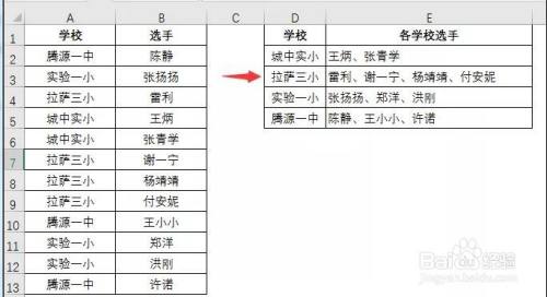 今天和大家分享同类汇总问题的2个解决小妙招。如下表,需将各学校的所有选手都汇总至同一单元格中,可以用IF及COUNTIF函数公式或借助Power Query功能(以Excel 2016为例)。