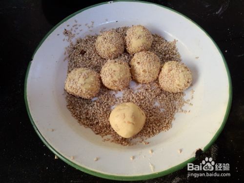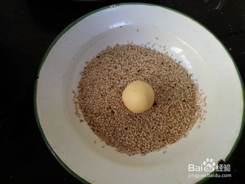 表面粘一点水,在芝麻上面滚一圈,