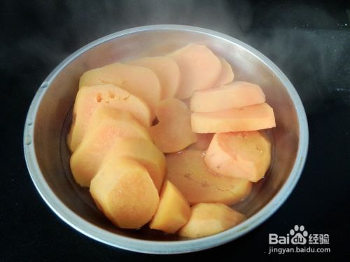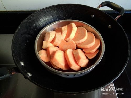地瓜去皮,洗净切块,放入蒸盘,