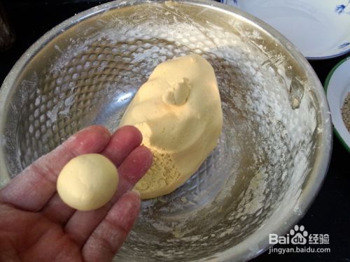 取一小块面团,揉成小丸子,