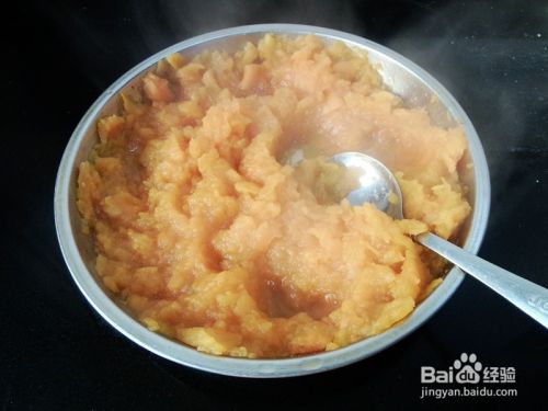 趁热用勺子碾碎,