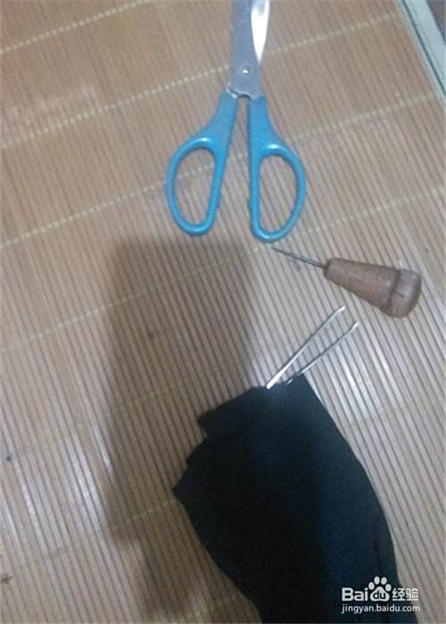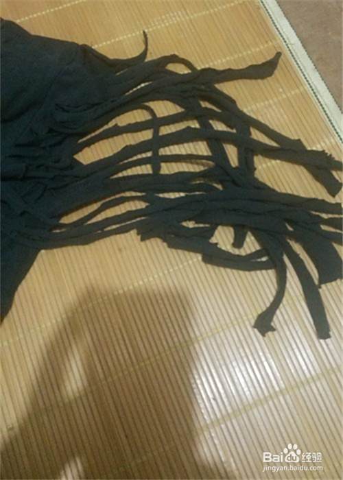 让我们比较一下袖子的长短,然后我们用剪刀开始剪我们的袖子,最好先画出要剪得流苏的直线,参照直线来剪这样比较不容易剪坏。