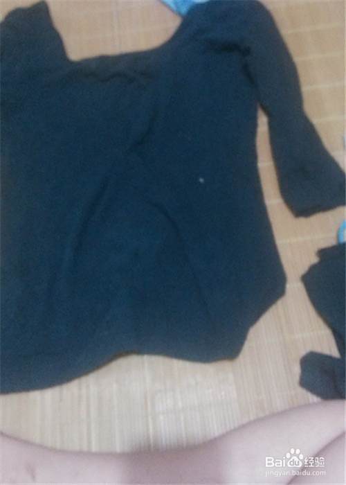 现在我们首先找出一件旧的中长袖的T恤,摊开铺平,然后用剪刀剪掉自己不要的袖子,我的是长袖,所以我需要剪成中袖,剪得时候注意哦别伤到自己。还有就是两个袖子的长度要一样哦。