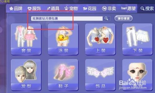 在搜索框中输入”炫舞紫钻月费包裹“或者”炫舞紫钻年费包裹“,然后搜索。