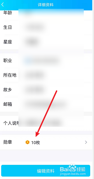 在出现的界面中,点击【QQ号】,点击下方【勋章】。