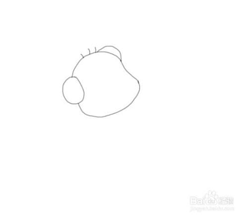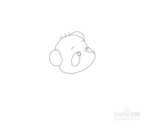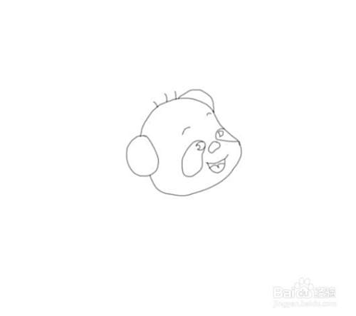 首先画出熊猫的头部,然后再在头部上画出熊猫的两只耳朵,并在画出熊猫的毛发,如图所示: