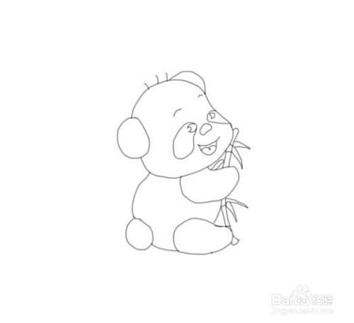 最后我们再在熊猫的手里面画出竹子,并在画出竹叶,这样吃竹子的熊猫就画好了,如图所示: