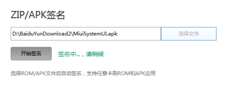 点击 开始签名 等待几秒钟即可完成