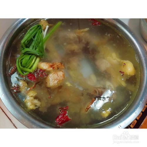 鸡块放入装满水的锅里,放入葱,姜,蒜,干辣椒,花椒,胡椒(我用的是颗粒的那种哦)和炒过的鸡块??