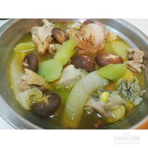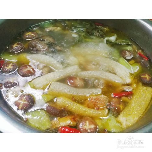 小火慢炖2小时后,放入青笋和竹笋,继续小火炖30分钟左右,最后放入食用盐,出锅