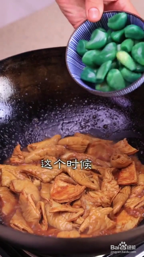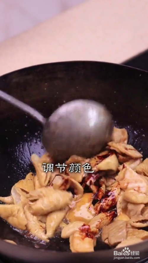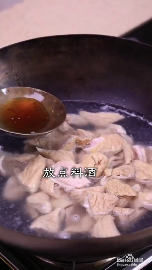 接着在锅中烧油,油热放入肥肠翻炒至表面微黄,淋入料酒去腥,再放入生抽,老抽翻炒上色,接着放入无分满的清水,加入盐和白糖调味