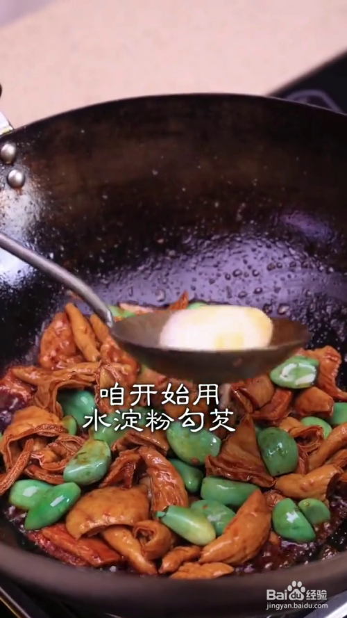 再放入腊八蒜翻炒大约两分钟,入味后淋入水淀粉勾薄芡,再放入少许腌制腊八蒜的醋,翻炒出香味即可开吃啦
