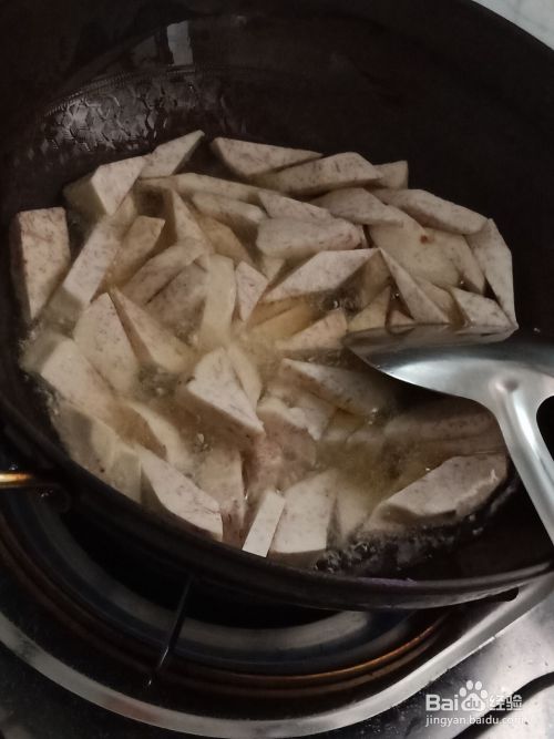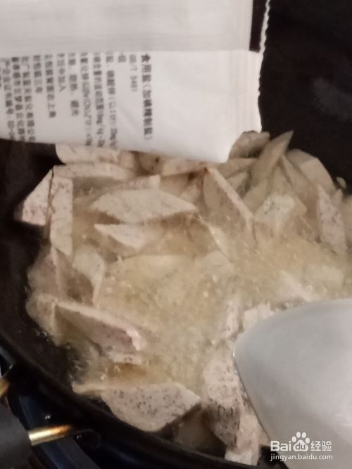 油炸至香芋有点变色了加入盐翻炸均匀;