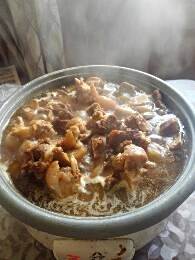 炒匀后,将猪蹄盛入高压锅中,加适量水,压十分钟;