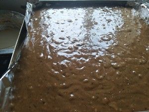 倒入28×28的烤盘中,烤盘最好垫上锡纸,刷上油后面比较好脱模。倒进去后,稍微震一下烤盘,让气泡放空。烤箱180℃上下预热6-8分钟,然后放进去烤30分钟左右,当烤到15左右的时候看到明显的发起来,把枣糕拿出来上面盖上锡纸,避免烤焦。