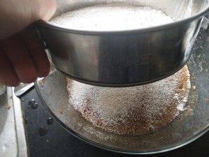 300g面粉分3次过筛到碗里,第一次过筛完搅拌均匀。第二次过筛完可以倒入150g的油,然后搅拌均匀,后面两次导入面粉不建议用打蛋器搅拌,容易起筋,直接用筷子或者刮刀搅拌。
