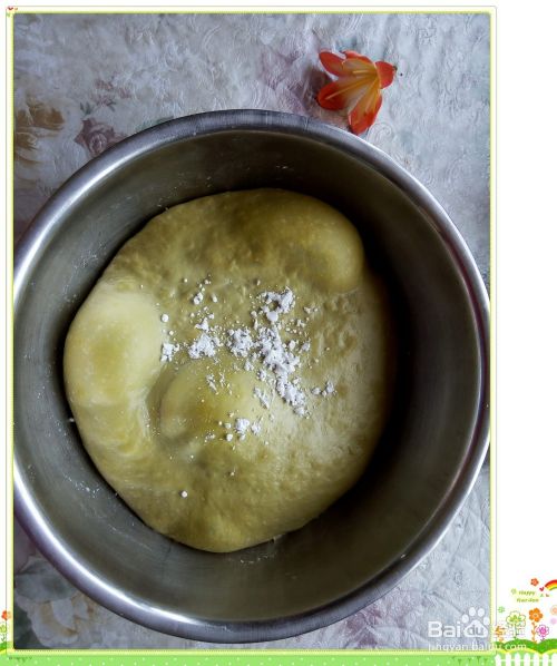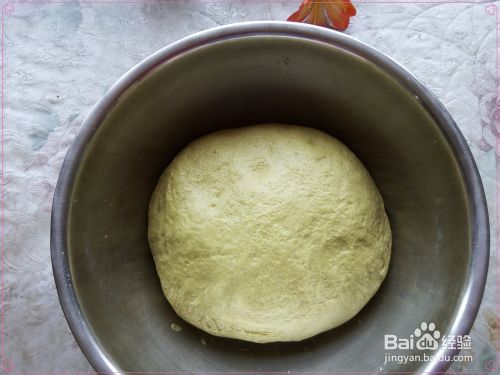 用菠菜汁、温水和面,将和好的面团盖好,放到温度高点的地方,等待发酵。
