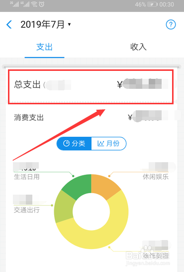 最后,总支出账单界面就能看到具体的每次支付宝扣费记录了。