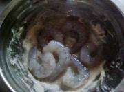 虾仁裹上蛋清淀粉糊。