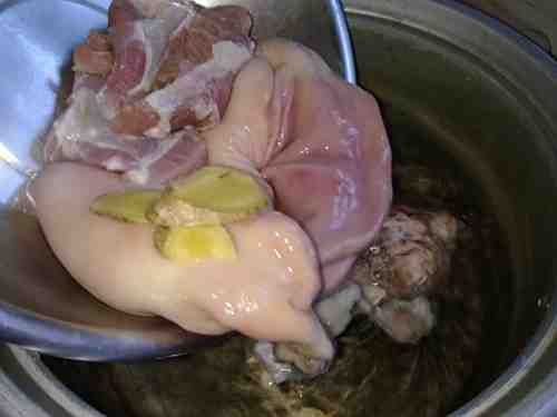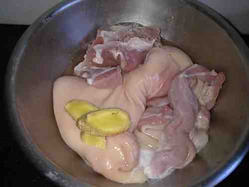 1猪肚与瘦肉洗净,准备好两片姜;