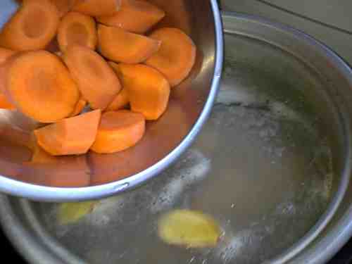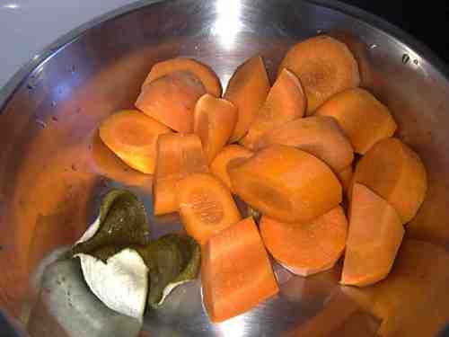 3红萝卜去皮洗净,切成块,准备好陈皮;