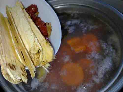 6最后倒入黄芪与红枣;