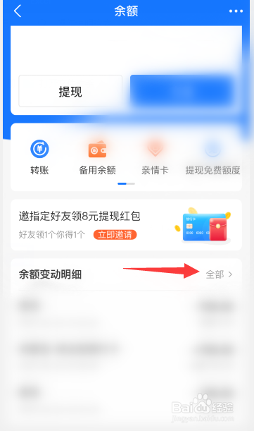 打开余额页面后,点击余额变动明细右侧的“全部”