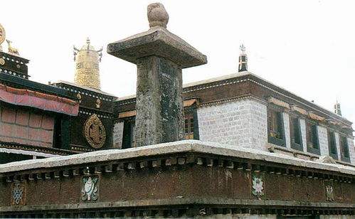 进入大昭寺前面的小广场,可以看到大昭寺的全貌。首先映入眼帘的是被围墙围起的两块石碑。南边一块便是著名的唐蕃会盟碑,高3.42米,宽0.82米,厚O.35米,唐长庆三年(823年)用藏汉两种文字刻写。公元九世纪,唐朝与吐蕃王朝达成和好,以求“彼此不为寇敌,不举兵革”、“务令百姓安泰,所思如一”和“永崇甥舅之好”之目的。