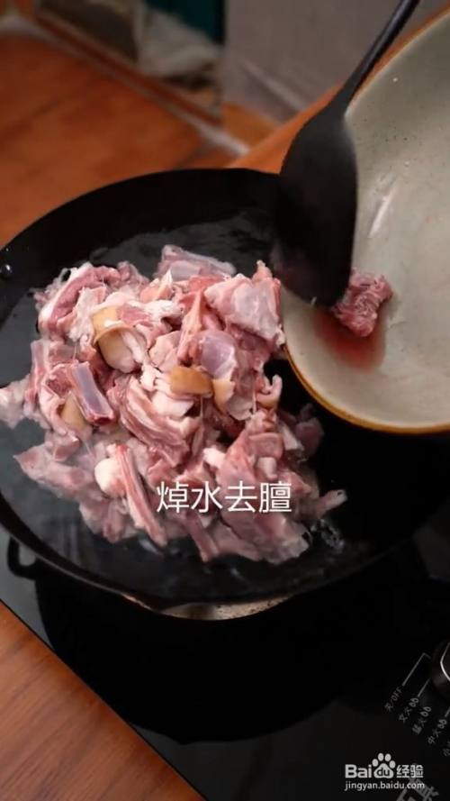 羊排冷水下锅焯水去膻,放入葱姜蒜料酒,焯出血沫后捞出