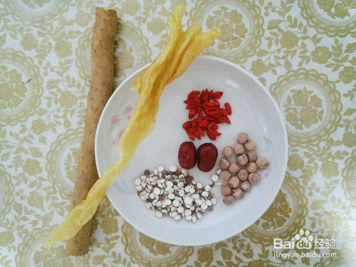 山药削皮,和莲子,芡实,一起放炖锅里炖,炖50分钟后加去核红枣,枸杞子,在炖10分钟就好了.