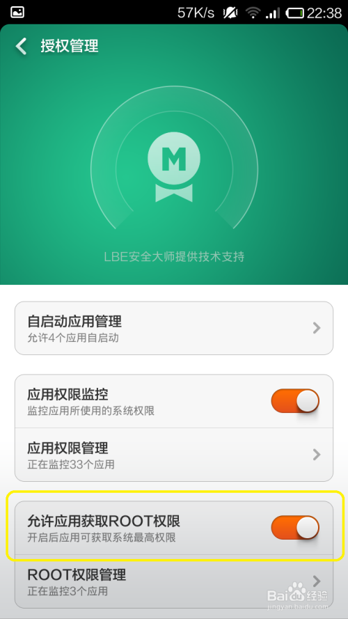 此时,会进入如图所示的界面,我们可以看到标注处有root管理的选项。我们选择打开即可。