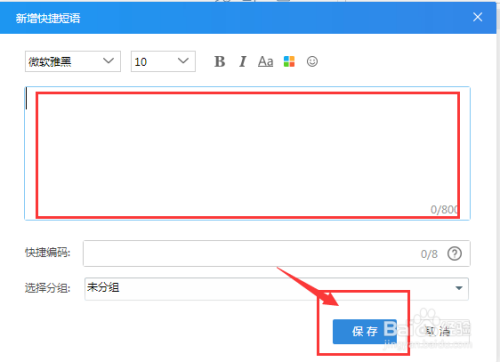 弹出快捷短语设置框,输入要设置的短语:点击保存按钮: